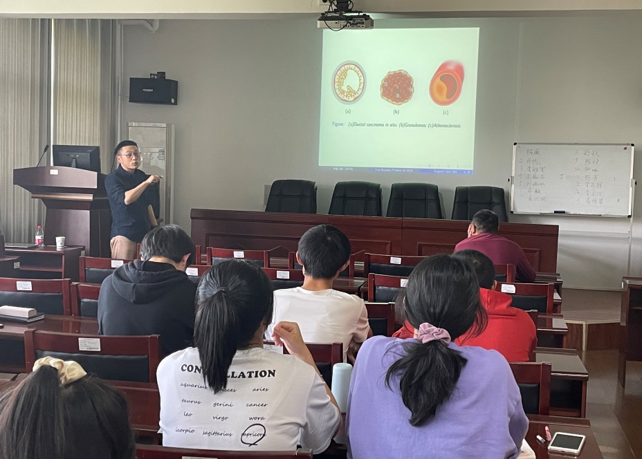 研究生同学的介绍了导管原位癌模型的自由边界问题,其核心是边界会随时间的变化而不断变化。随后,刘单教授为同学们讲解了肿瘤生长的自由边界问题。同学们纷纷表示,此次学术讲座让大家受益匪浅,使同学们了解到数学在生物、医学等不同领域的广泛影响及应用,更加激发了同学们在学术研究上的兴趣和热情。