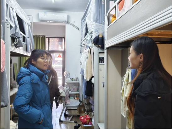 学工办主任姜曼、院团委书记黄何在东校区学生宿舍23栋和10栋分别进行安全慰问走访;辅导员吴朝晖在西校区风华园进行慰问走访。