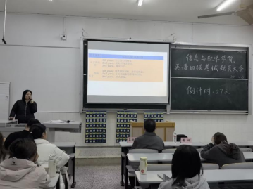 师生的爱国情怀和团结精神。接着,外国语学院的陈琳琳老师为在场的同学们带来了一场精彩的考前辅导。陈老师凭借其丰富的教学经验和对四级考试的深刻理解,为学生们详细解读了考试大纲,分析了考试趋势,并提供了实用的备考策略。陈老师的讲解深入浅出,让同学们对四级考试有了更加清晰的认识。