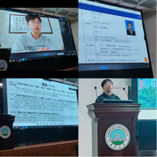 会议伊始,院团委书记黄何为会议开场致辞,介绍到场嘉宾,并对当前的考研形势及考研对学生的重要性进行了深入的分析,强调考研不仅能促进学生自身发展,帮助获得更丰富的知识、开阔眼界,还能满足社会对新型人才的需要。紧接着,朱建伟老师针对备考策略进行了分享,为广大备考学生提供了行动指南。随后,成功保送兰州大学研究生20级的李家胜学长和成功考取西南财经大学研究生的20级学姐梁宇欣针对同学们学科基础弱的问题,以vlog的方式分享了政治与英语的备考复习经验。同为20级的学长汪兴宇以考研成绩第一名的位次考研到本院就对于同学们犯难的笔试面试问题给出了建议,以自身的经历为背景通过现场解说从多个角度分享了自己是如何在激烈的竞争中脱颖而出的经验,鼓励在场的同学们坚定信念,勇敢面对挑战。同时汪春花老师也为同学们分享了高等代数方面的备考战略。毫无疑问,这次的经验分享解决了许多同学们心中的难题,也为之后的备考做了更充分的准备。