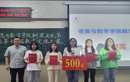 于5月4日下午3点在12教202举办第十三届数学定理大赛。院党委副书记袁海山、副院长李向军、院学工办主任严星、团委书记钟赛、数学与应用数学系主任严政、信息与计算科学系主任李小飞、副教授邹建、辅导员黄何、兼职辅导员黄才润莅临本次比赛,20级和21级部分同学参赛。本次活动由高胜和彭书静主持。