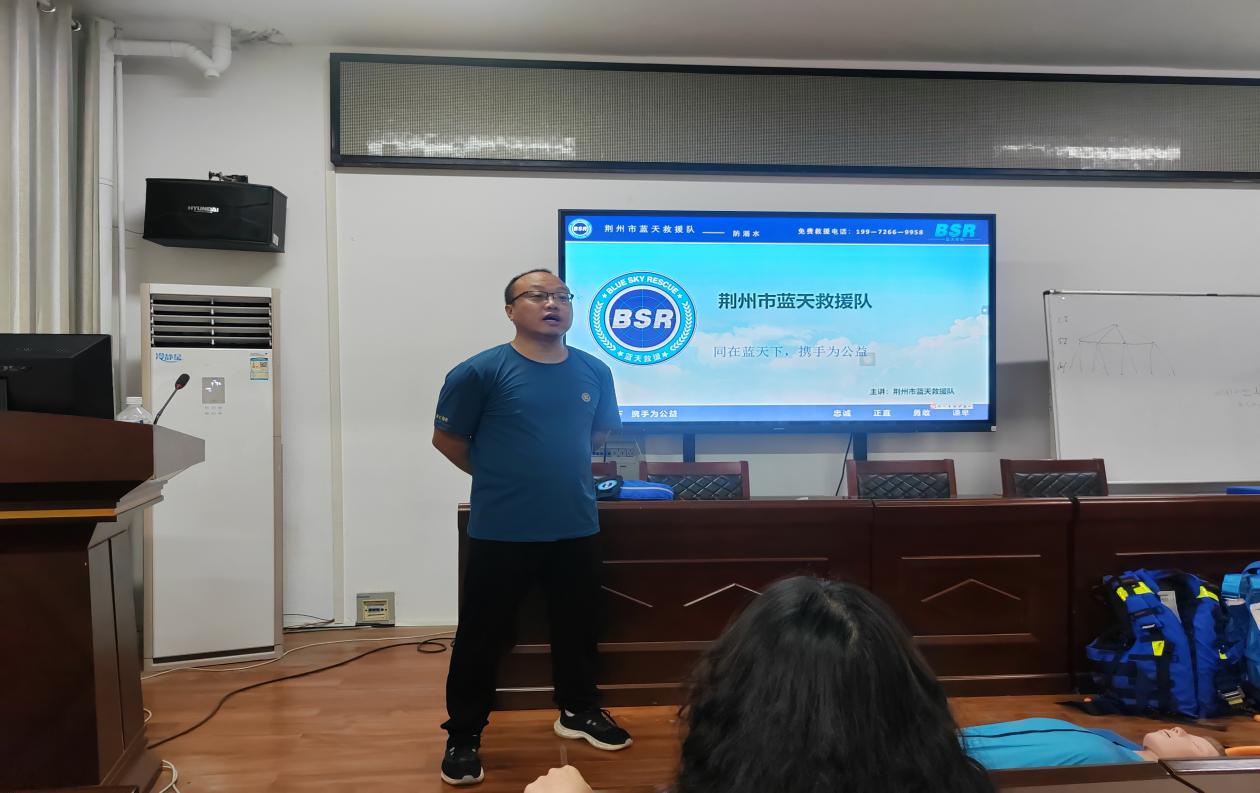 邀请荆州市蓝天救援队于5月28日下午4时在8教406为同学们开展防溺水安全培训,全体大一至大四班级的班长、副部长和团支书参加此次培训。