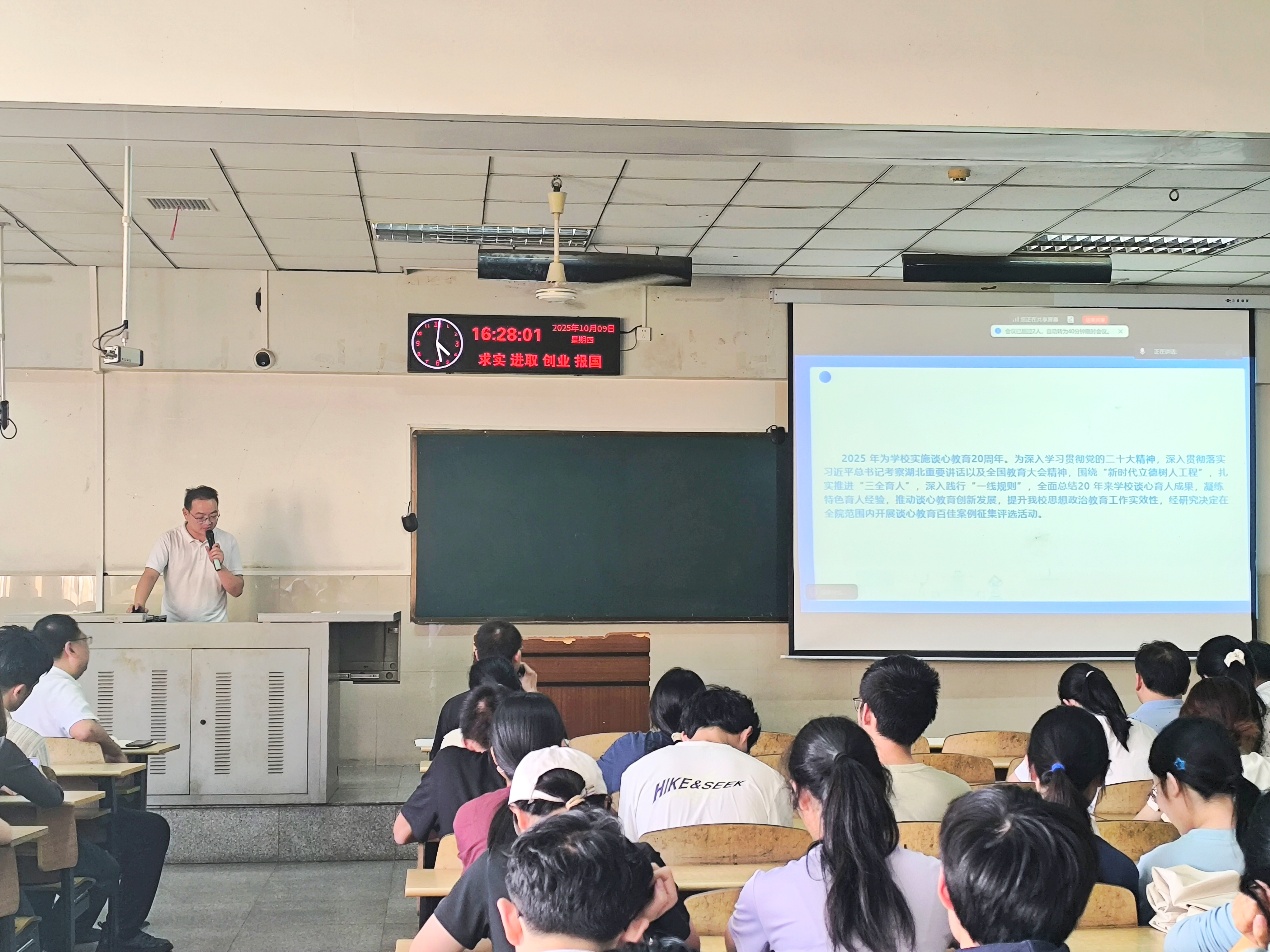 随后,辅导员吴朝晖对谈心工作进行布置。他既回顾了前期谈心工作在助力学生成长、解决学生困惑方面取得的实际成果,也客观分析了工作中存在的不足,并进一步明确了后续谈心工作向精细化推进的方向,为班主任和学生干部开展相关工作提供了清晰指引。