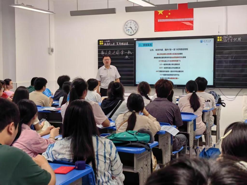 党委副书记谷军一行前往北门中学,面向该校高三师生开展了一场内容详实、极具价值的招生政策解读与升学指导讲座。北门中学校级领导、高三年级班主任以及部分学生代表参与此次活动。