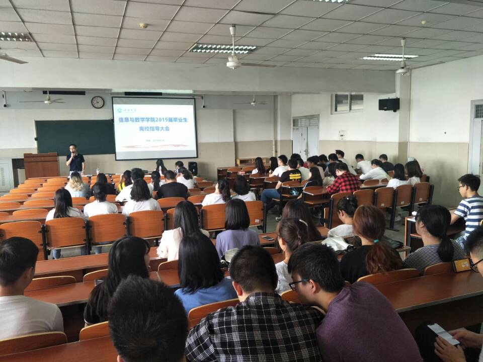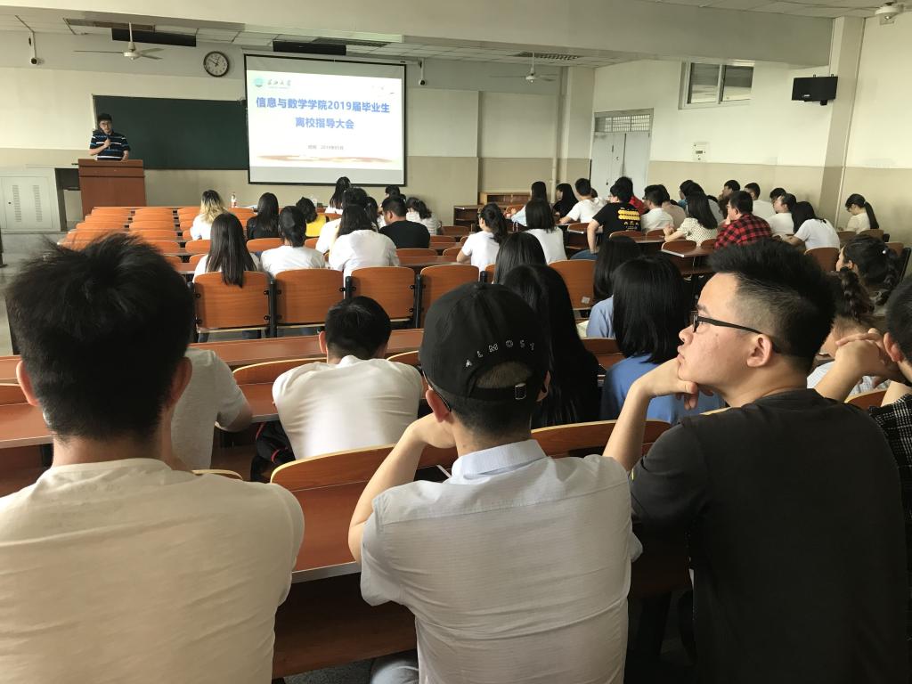 2019届毕业生离校指导大会在东校区12教404教室顺利召开。学院党委副书记袁海山老师、兼职辅导员林香亮老师和全体2019届毕业生参加会议。