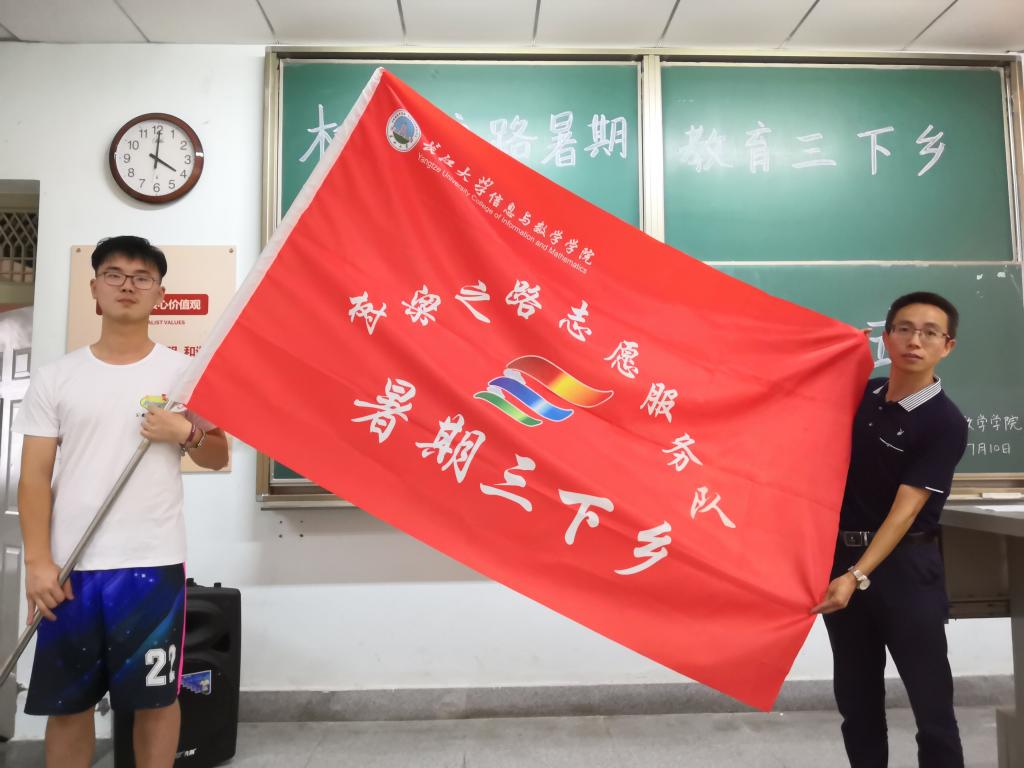 伴随着雷鸣般的掌声,一面光荣的树梁之路志愿队旗由袁海山书记转交给负责人程骋。全体志愿者在程骋的带领下宣誓。随后袁海山书记讲话,他强调此次志愿活动是非常有意义的,并阐述了农村教育资源的落后以及孩子们缺少关爱的社会现象,希望全体志愿者能给孩子带去的不仅仅是知识,更多的是陪伴!相信全体志愿者们能捧出一颗心,倾注满腔情。让每一个适龄儿童少年,同沐温馨的阳光雨露。