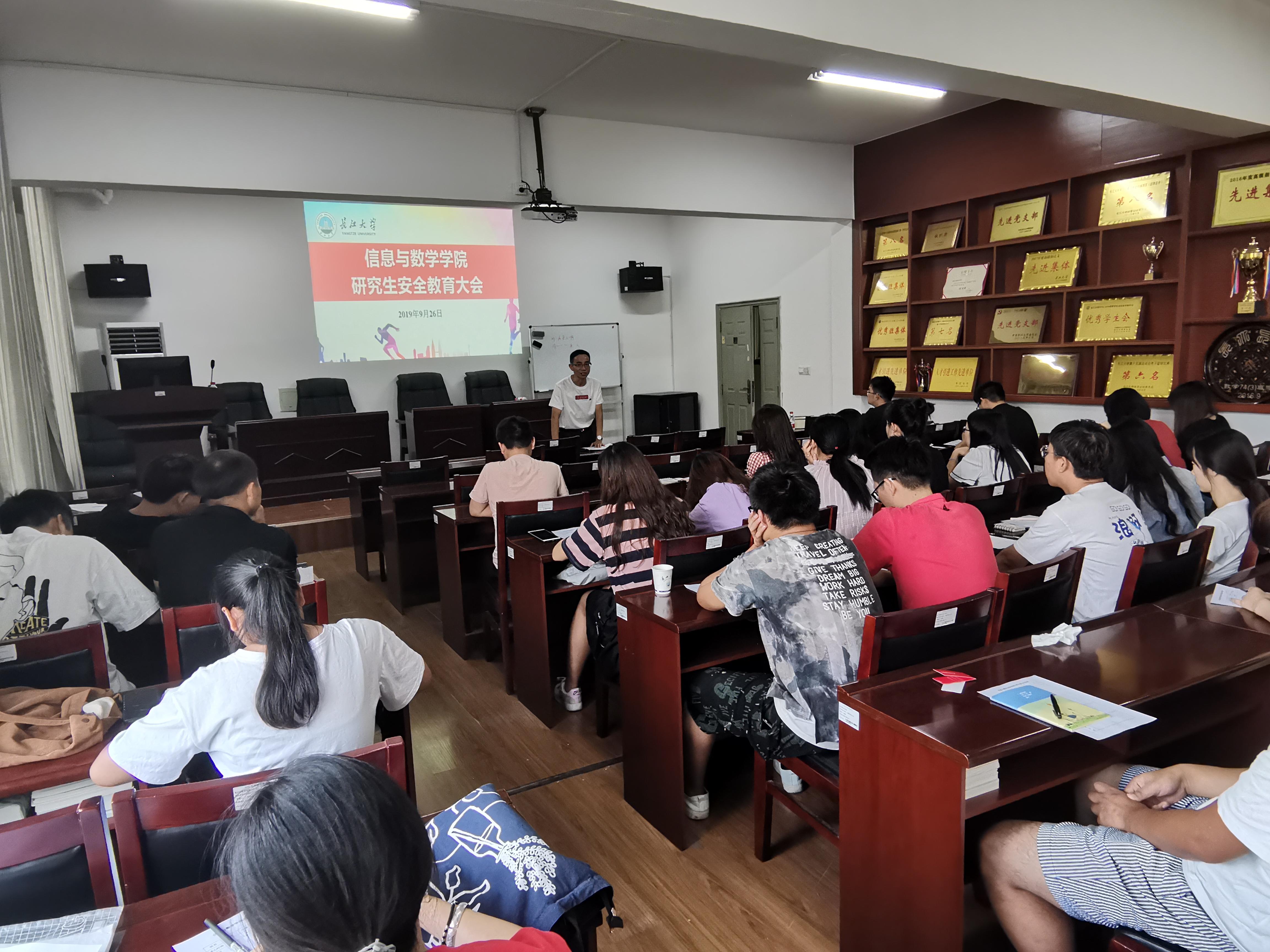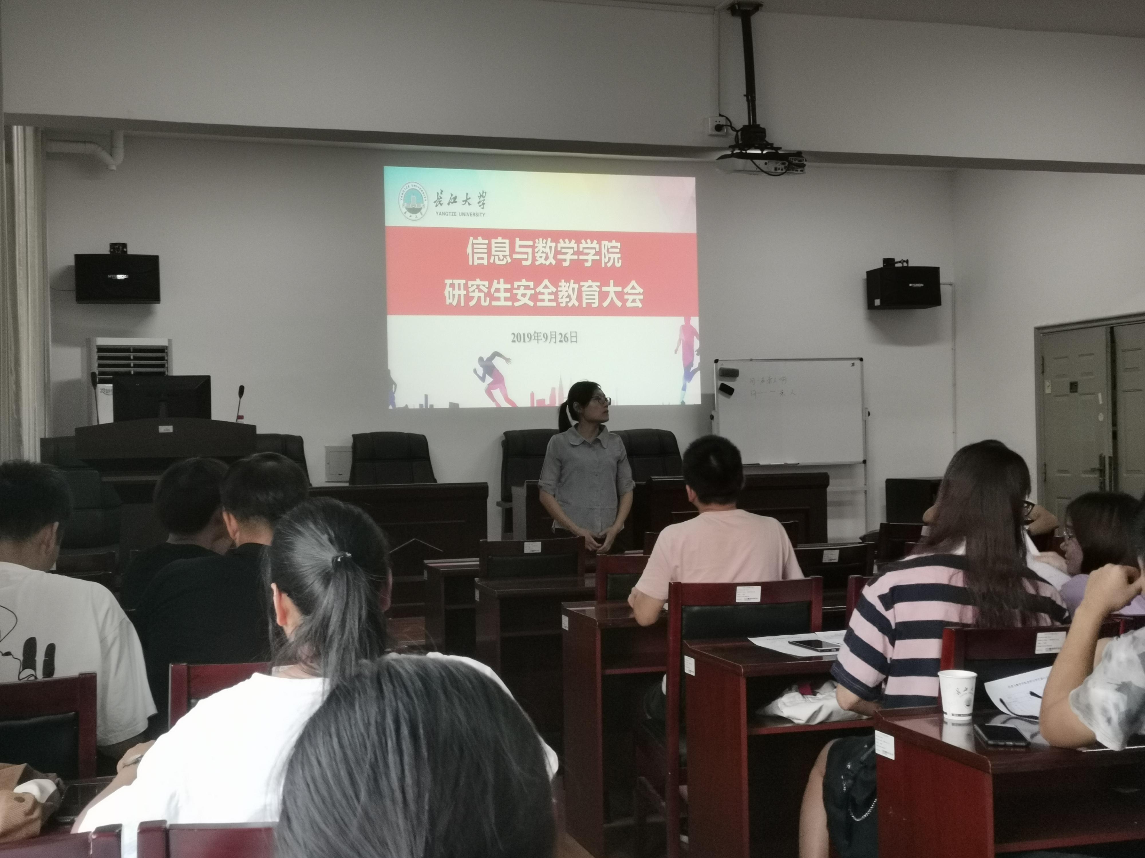 在8教406教室顺利召开研究生安全教育大会。院党委副书记袁海山,研究生辅导员严星和全体研究生参加会议,会议由研究生辅导员严星主持。