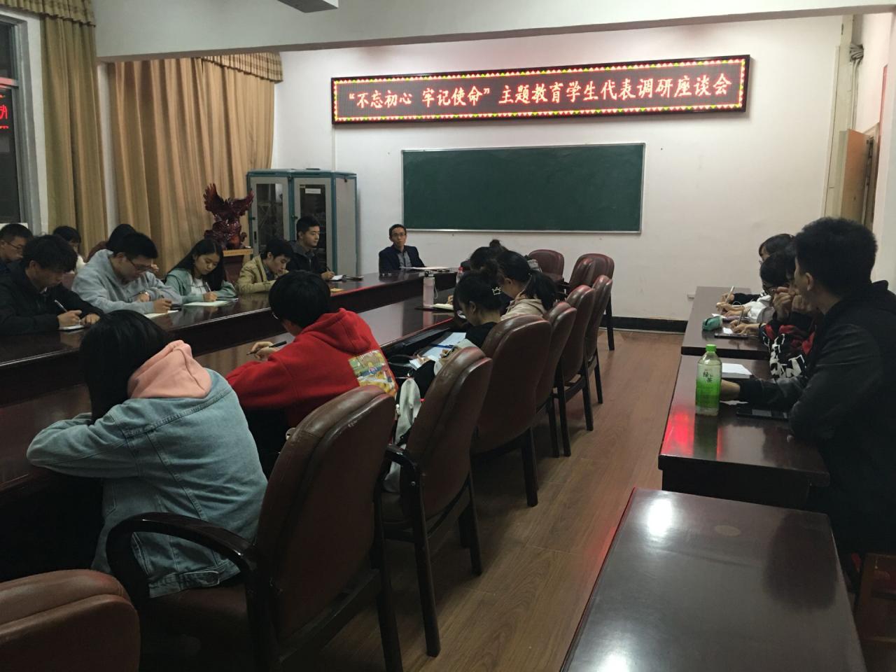 在东校区8教400召开 “不忘初心,牢记使命”主题教育学生代表调研座谈会。院党委副书记袁海山、院团委书记严星和学生干部代表参加座谈。