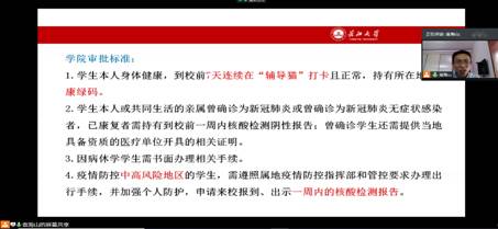 特于9月12日下午3时召开“梦想启航 安全至上”新生入学前主题教育线上会议。院党委副书记袁海山、辅导员钟赛、2020级全体新生参加本次会议。会议由钟赛老师主持。