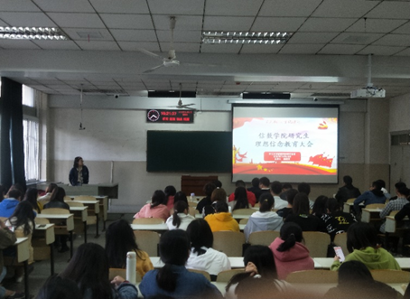 在东校区12教101教室举行了“理想信念教育大会”,学院副党委书记袁海山出席大会,全体研究生参会,会议由亚洲无码