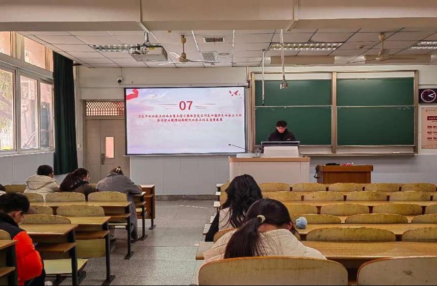 全体研究生在13教A102开展十二月政治理论学习活动,此次会议由院研究生会组织部鲍泽智主持。