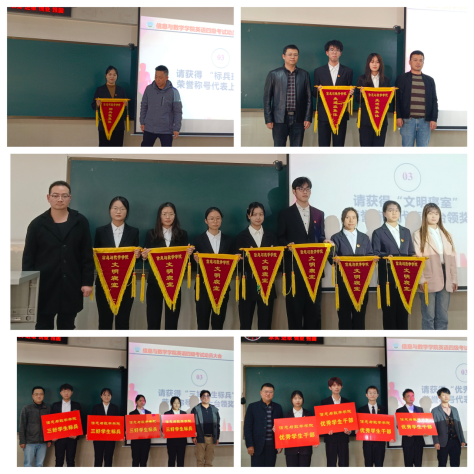 会议伊始,全体起立,奏唱国歌。接着院党委副书记谷军宣读表彰文件,由领导老师分别为“优秀学生干部”代表、“文明寝室”代表、“三好学生标兵”代表、“先进班集体”代表、“标兵班集体”代表颁奖。