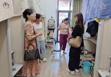 随后,老师们对20级毕业年级寝室进行了走访,对学生最关注的就业和考研等方面进行了相关指导。最后,老师们前往23级新生宿舍,了解新生即将居住的环境,对于宿舍文化建设提出了建议,并表示在日后的工作中对优秀寝室进行表彰,建立亚洲无码