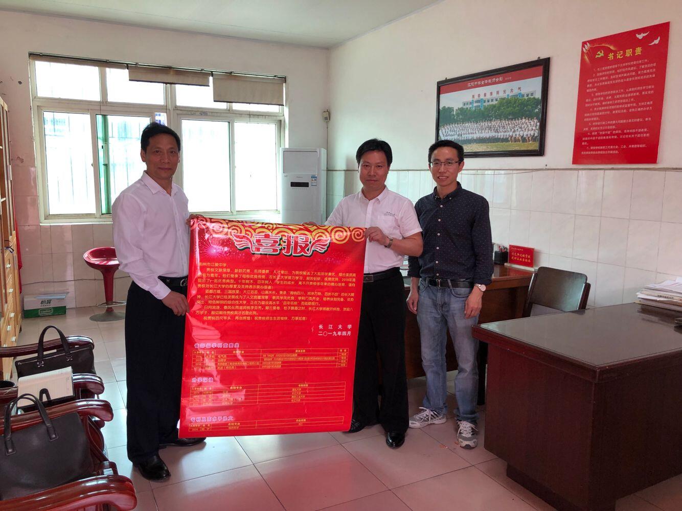 招生工作小组成员在院党委书记高迎斌的带领下,分别到荆州城区联系的中学(荆州中学、沙市中学、江陵中学、北门中学、沙市一中、沙市五中)进行了招生宣传走访。