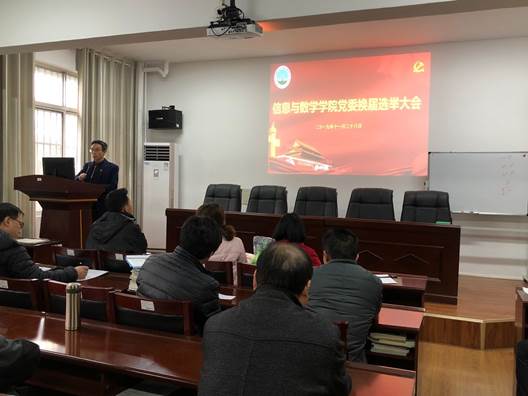 党委在8教406报告厅举行新一届党委换届大会。党委副书记袁海山主持,全体党员参加。