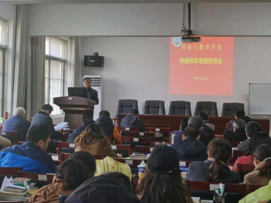 在8教406会议室举行12月政治理论学习会,开展师德师风专题教育。全体教职工参加,党委书记高迎斌主持。