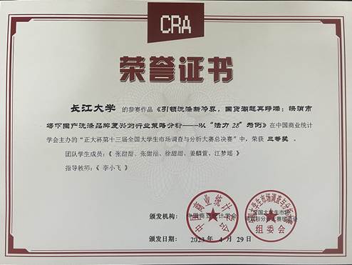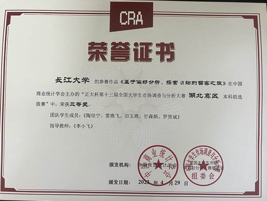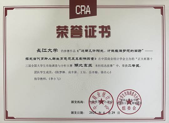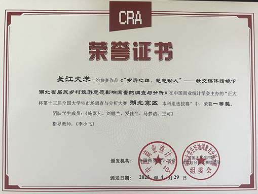 近日,“正大杯”第十三届全国大学生市场调查与分析大赛湖北赛区选拔赛在武汉理工大学圆满落幕,我校学生再次获得优异成绩,共获得国家三等奖1项,省一等奖2项,省二等奖2项,省三等奖1项,为我校学生参加该项赛事以来取得的最好成绩。