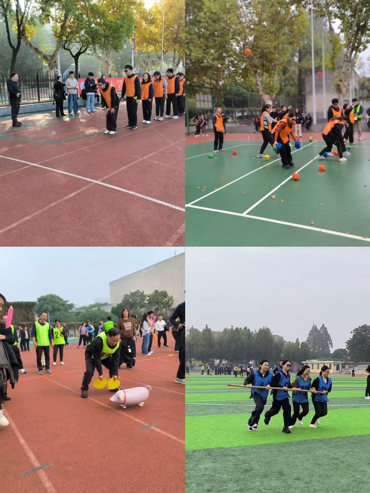 教职工赛场同样精彩纷呈。学院领导张涛院长、毛德波书记率先垂范,带领教职工在趣味运动会中连创佳绩:“沙包跨境对决”勇夺第一名,“持杆同步绕杆”获第二名,“聚力颠球绕杆”取得第三名,充分展现全院教职工的凝聚力与战斗力。