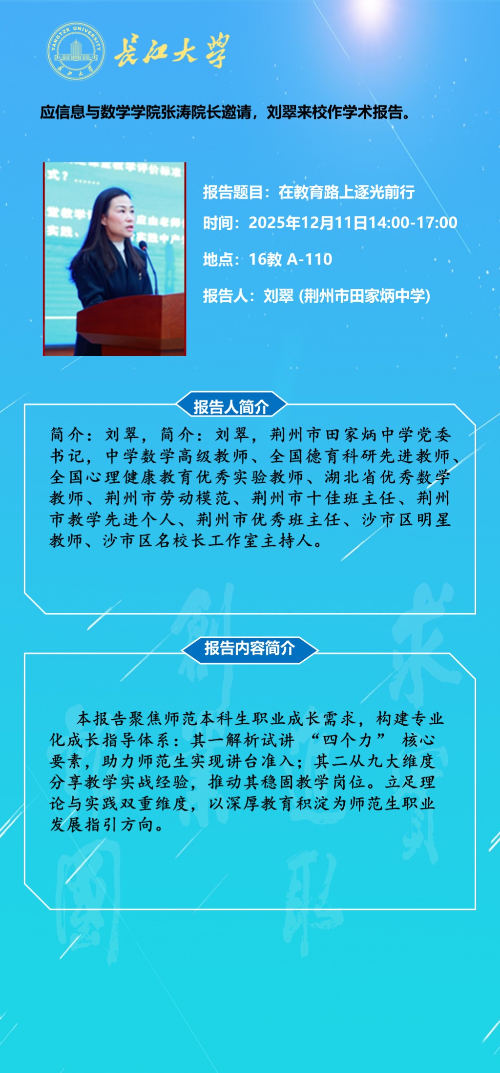 报告人 刘翠(荆州市田家炳中学) 报告时间 2025年12月11日14:00