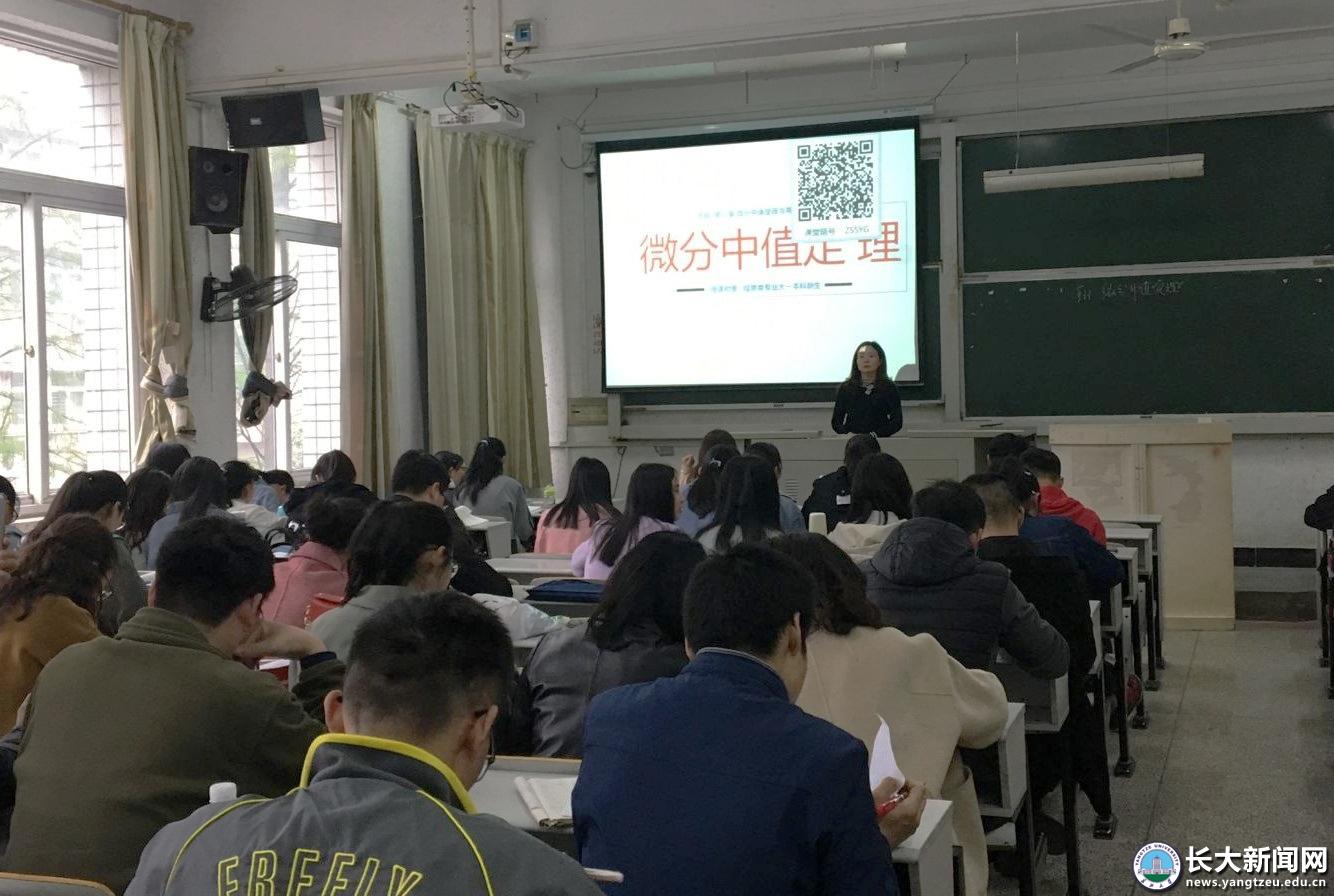 胡倩老师讲授内容为“微分中值定理”。参加听课的老师通过扫描二维码加入胡倩老师的“雨课堂”,现场体验学生上台作答、问答互动、现场答题统计、现场答题批改、点评或弹幕到屏幕,有效地展示了“雨课堂”良好的师生课堂互动、及时的授课反馈等特点,让老师们亲身体验了手机进课堂、信息技术辅助实现教与学的新的教学形态。