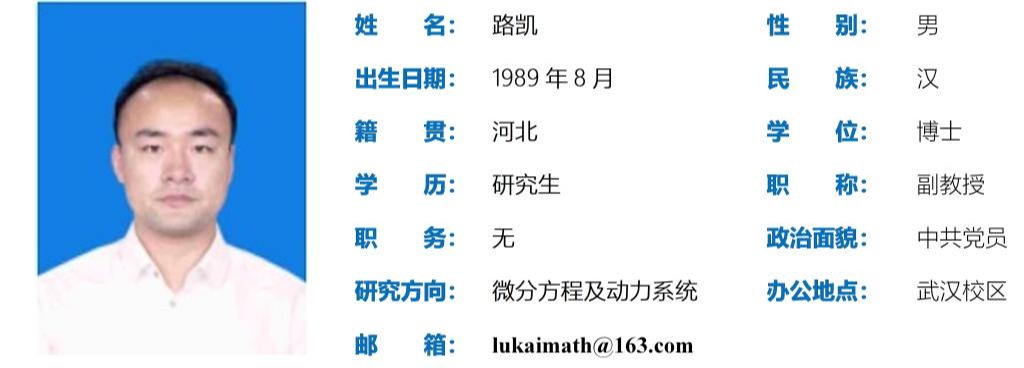 路凯,男,生于1989年8月,博士,副教授,主要研究方向为微分方程及动力系统。2019年12月毕业于华南理工大学亚洲无码